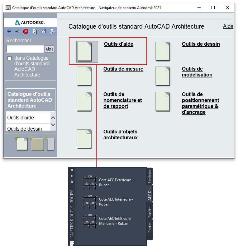 Conseil : Si vous travaillez sur un projet Jeu d’outils AutoCAD Architecture 2027, vous pouvez générer un catalogue d'outils basés sur les styles de normes du projet.