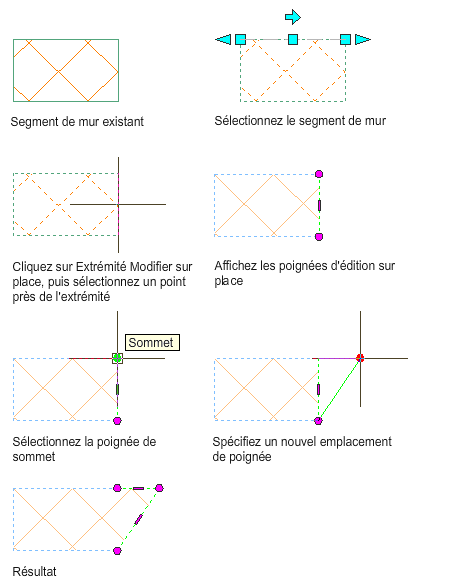 Pour modifier une extrémité de mur à l'aide des poignées de sommet