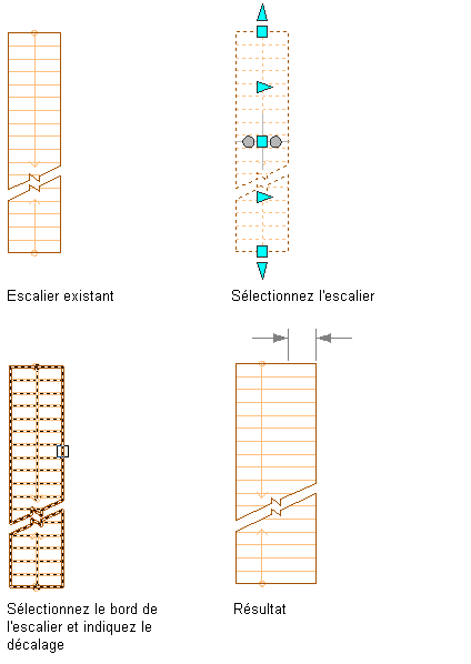 Remarque : Lorsque vous modifiez la largeur d'un escalier après avoir décalé un côté, les modifications sont perdues.