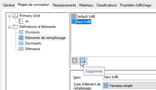 Pour supprimer une définition d'élément de remplissage d'un style de mur-rideau