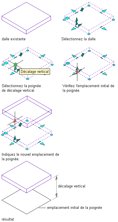 Changement du décalage vertical d'une dalle à l'aide de la poignée de décalage vertical