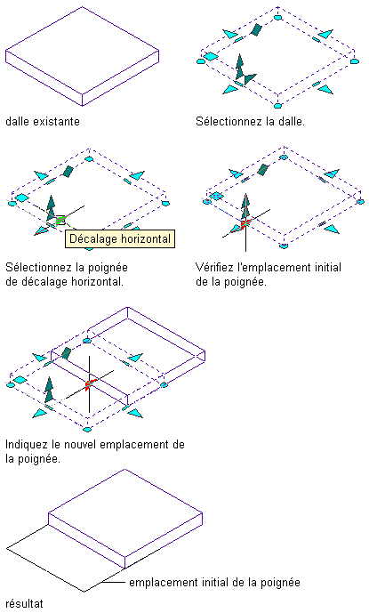 Cette procédure permet de modifier les décalages horizontal et vertical d'un objet dalle ou dalle de toit dans une vue isométrique 3D.