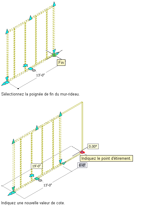 Trois types de cotes dynamiques s'affichent sur les poignées :