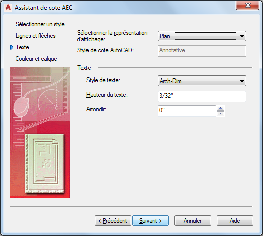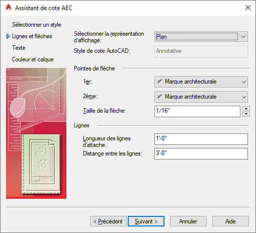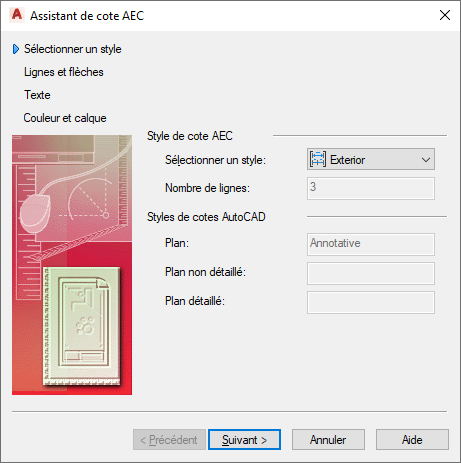 Sélectionnez le style de cote AEC à modifier et cliquez sur Suivant.