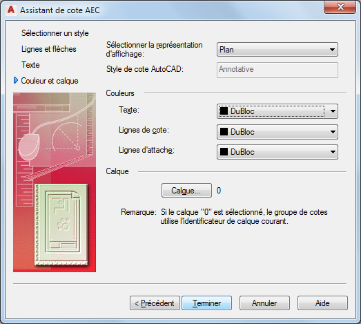 Pour modifier les propriétés des styles à l'aide de l'Assistant du style des cotes AEC