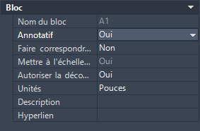- Dans la palette des propriétés, sous Bloc, sélectionnez Oui pour l'option Annotatif.