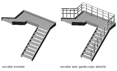Cette procédure permet de créer un garde-corps attaché à un escalier en lui appliquant les paramètres que vous définissez.