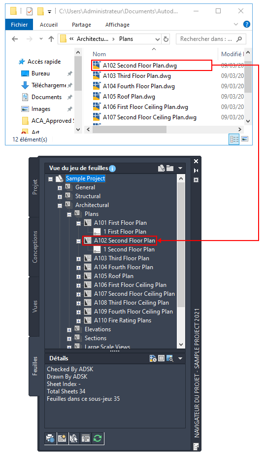 6. Placez-le dans l'explorateur de dessins de l'onglet sélectionné du Navigateur du projet :
