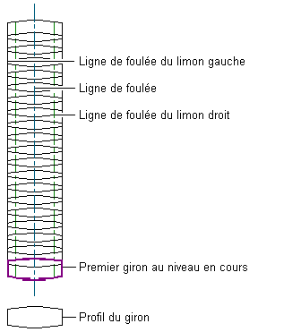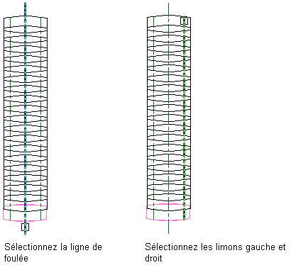 Dessin au trait. Seuls les polylignes minces à un seul segment ou à segments multiples ou les segments en arc qui entrecoupent tous les girons peuvent être sélectionnés pour la ligne de foulée.