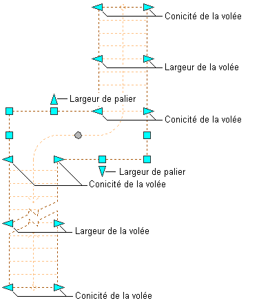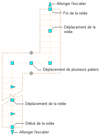 Pour modifier les escaliers à plusieurs paliers à l'aide des poignées prévues à cet effet, reportez-vous à la procédure décrite dans cette section.