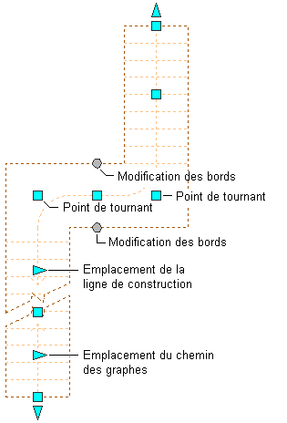 Poignées permettant de changer le point de tournant du palier d'un escalier à plusieurs paliers, l'emplacement de la droite, l'emplacement du chemin des graphes et de modifier les bords