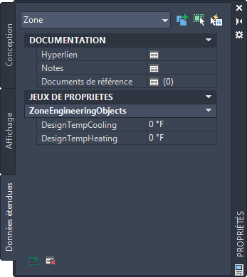 Le jeu de propriétés est ajouté à la zone sélectionnée et apparaît sous l'onglet Données étendues.