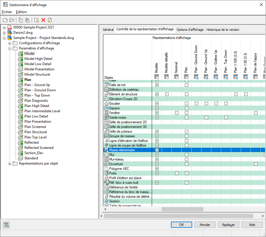 Cette procédure permet d'ajouter ou de supprimer des représentations d'un paramètre d'affichage. Les modifications que vous effectuez dans un paramètre d'affichage ont une incidence globale sur les configurations d'affichage qui utilisent ce paramètre d'affichage.