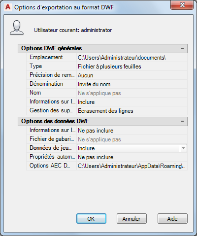 Options DWF/PDF.
