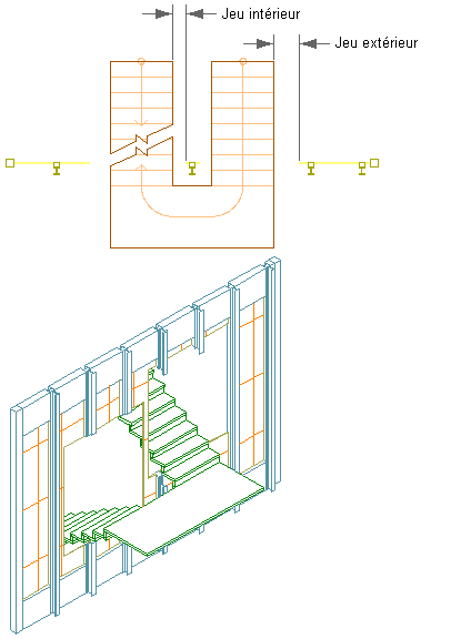 spécifier les jeux intérieur et extérieur pour la condition d'interférence des escaliers en colimaçon et en forme de U. entrez des valeurs dans les champs Jeu à l'intérieur et Jeu à l'extérieur.