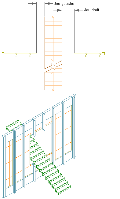 spécifier les jeux des côtés gauche et droit pour la condition d'interférence des escaliers droits et à plusieurs paliers entrez des valeurs dans les champs Jeu à gauche et Jeu à droite.