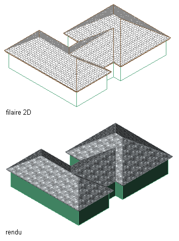 Affichage des toits en vue filaire 2D et en vue de rendu