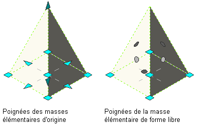 Lorsque vous retouchez la face d'une masse élémentaire de forme libre, vous avez le choix entre six options d'édition. L'option active est indiquée par une info-bulle.