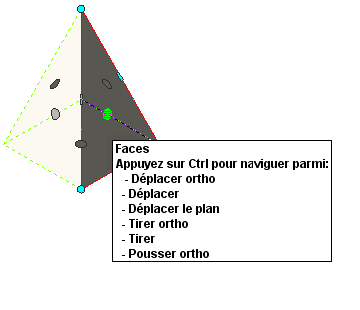 | déplacer librement la face, en étirant les faces adjacentes | cliquez sur la poignée de face, appuyez une fois sur la touche Ctrl et faites glisser la face vers le nouvel emplacement. | Déplacer la face librement, étirer les faces adjacentes |