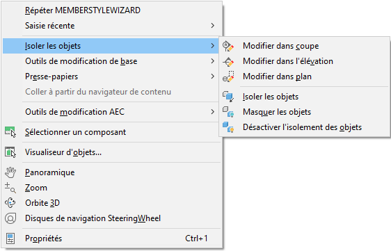 La plupart des commandes disponibles dans le menu contextuel d'un objet sont également présentes dans l'onglet contextuel du ruban de cet objet.