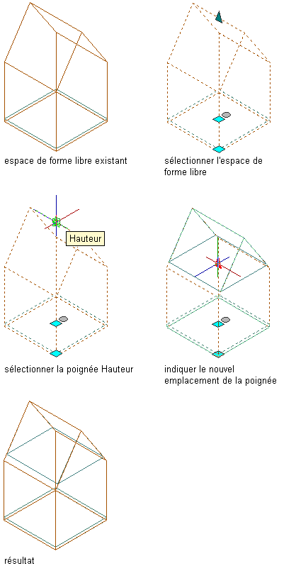 Pour modifier la hauteur des espaces 3D de forme libre