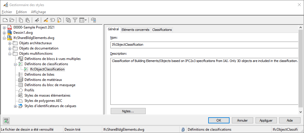Remarque : Enregistrez ce fichier de dessin avec les classifications avant son exportation en tant que dessin hôte ou Xréf.