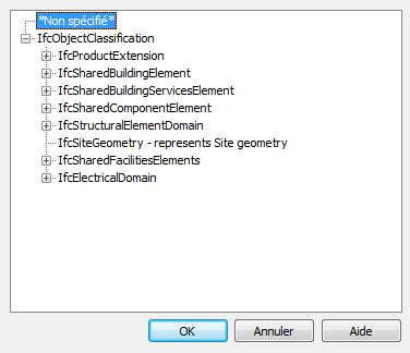 Remarque : IfcSiteGeometry est une classification unique. Cette classification peut être appliquée à n'importe quel objet, mais l'objet doit figurer dans un dessin IfcSite pour que la classification soit conservée lors de l'exportation. S'il ne s'agit pas d'un dessin IfcSite (la structure IFC pour les dessins contenant des Xréfs attachées), la classification IfcSiteGeometry n'est pas conservée lors de l'exportation au format IFC.