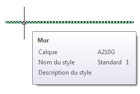 Les informations qui s'affichent sont standardisées et ne peuvent pas être modifiées, à la différence de celles se rapportant aux objets AutoCAD tels que les lignes ou les polylignes.
