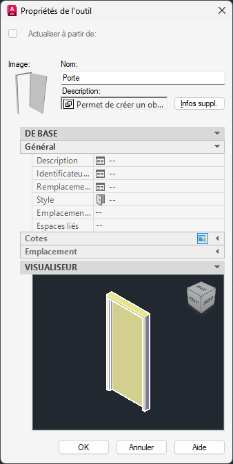 Visualiseur d’objets intégré aux propriétés de l’outil