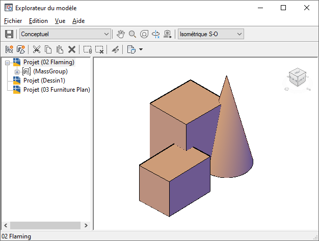 Le visualiseur d'objets permet d'afficher des aperçus des objets du dessin dans différents styles visuels, directions de visualisation et configurations d'affichage, sans modifier l'affichage de la zone de dessin.