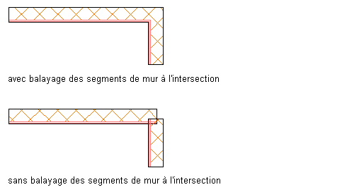 Une définition de groupe de nettoyage de mur est une désignation que vous pouvez affecter à des murs pour déterminer la manière dont les murs qui s'entrecoupent effectuent le nettoyage. Pour les murs appartenant au même groupe de nettoyage, le nettoyage s'effectue au point de leur intersection, selon la priorité associée à chaque composant de mur. Pour ceux qui appartiennent à des groupes de nettoyage différents, aucun nettoyage n'a lieu lorsque la jointure des murs se situe au niveau d'angles ou d'intersections.