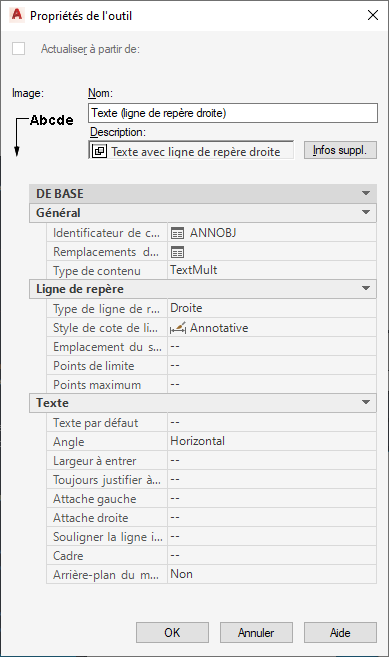 - Prenez l'habitude lorsque vous créez des outils de palette de prévoir des mécanismes d'automatisation. A l'exception des outils de contenu AEC, un large éventail de propriétés peut être préconfiguré pour automatiser et normaliser davantage la création d'objets.