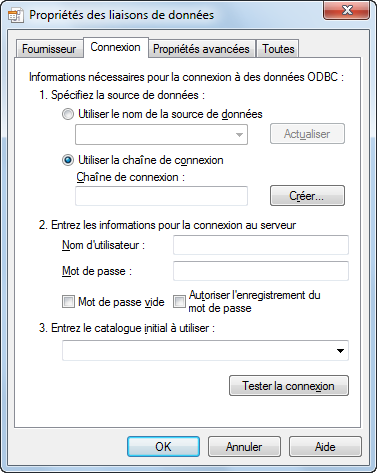 - Sous l'onglet de connexion, choisissez Utiliser la chaîne de connexion.