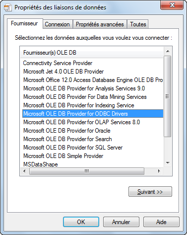 - Sélectionnez le fournisseur Microsoft OLE DB pour pilotes ODBC et cliquez sur Suivant.