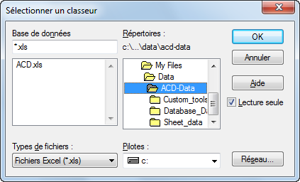 Remarque : L'instruction ci-dessous décrit le processus de création d'un lien entre une base de données et un fichier Microsoft Excel : De la même manière, il est possible de créer des liens avec les bases de données Microsoft Access, les fichiers de texte intégral ASCII et les fichiers avec données séparées par des virgules (CSV).