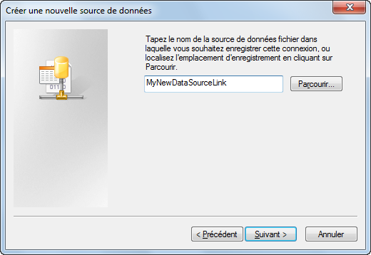 - Entrez le nom que vous voulez donner au nouveau fichier DSN et cliquez sur Suivant.