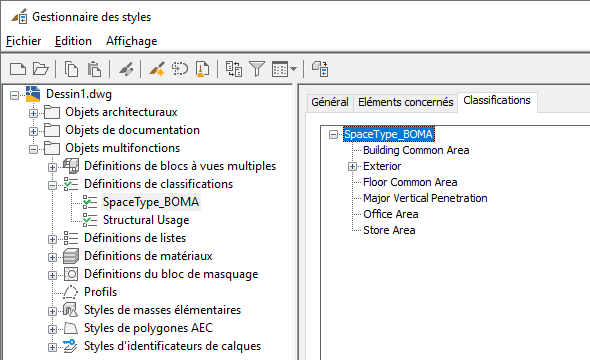 Classification BOMA insérée dans le dessin