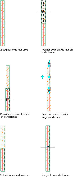 Cette procédure permet de combiner les lignes de base de deux murs de façon à ne créer qu'un seul segment. Les murs que vous joignez doivent remplir les conditions suivantes :