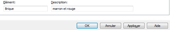 - Dans la zone Elément, entrez Brique.