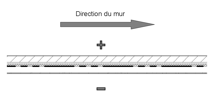 - Les extrémités sont appliquées perpendiculairement à la direction du mur. Sauf dans les cas où une extrémité est volontairement inclinée, pour dessiner les points d'arrivée de chaque extrémité, imaginez une ligne reliant ces points perpendiculaire aux bords du mur.