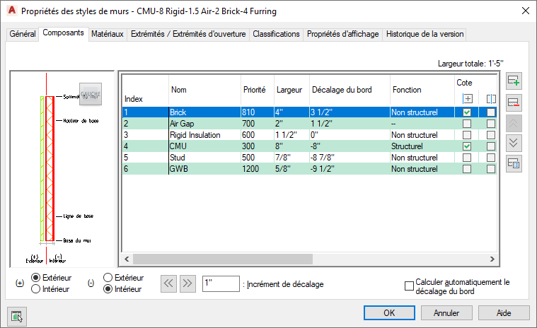 - La définition de style d'un mur doit inclure un côté extérieur et un côté intérieur afin de garantir une cotation AEC plus précise.