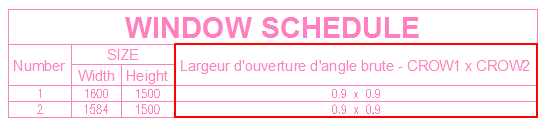 - Sous Styles de fenêtres, sélectionnez Largeur d'ouverture d'angle brute - CROW1 x CROW2.