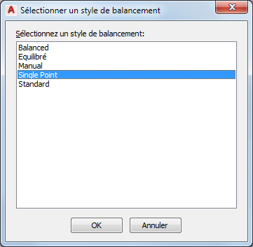 Remarque : Seuls les styles de balancement présents dans le dessin sont affichés.