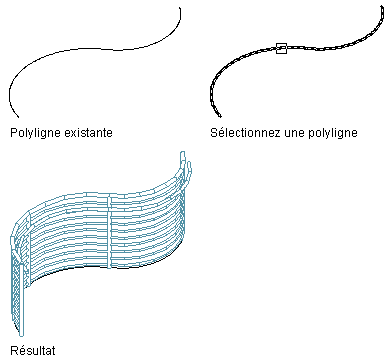 Cette procédure permet de convertir une polyligne sous la forme d'un garde-corps possédant les propriétés de l'outil de garde-corps sélectionné. Ces propriétés peuvent être modifiées après la création du garde-corps.