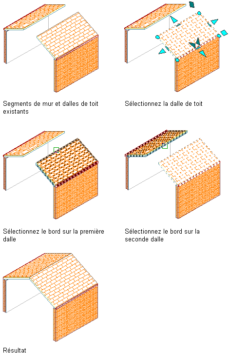 2. Tapez b (bords) pour assembler à onglet les bords sélectionnés des dalles de toit.