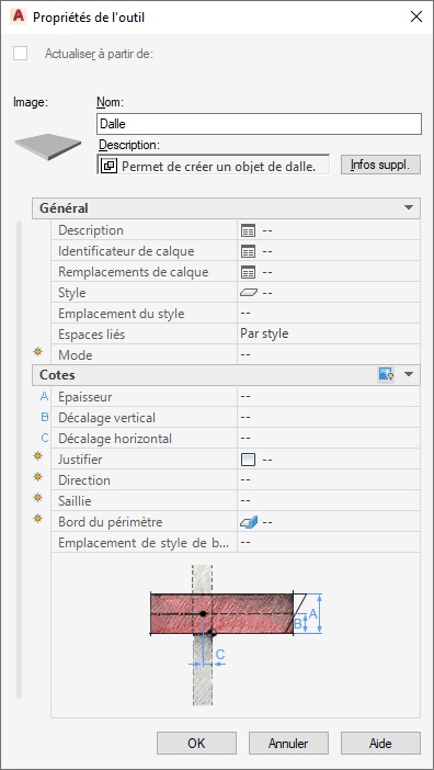 Propriétés d'outil de dalle avec un style de bord de dalle défini par défaut