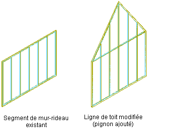 Modification de la ligne de toit d'un mur-rideau par ajout d'un pignon