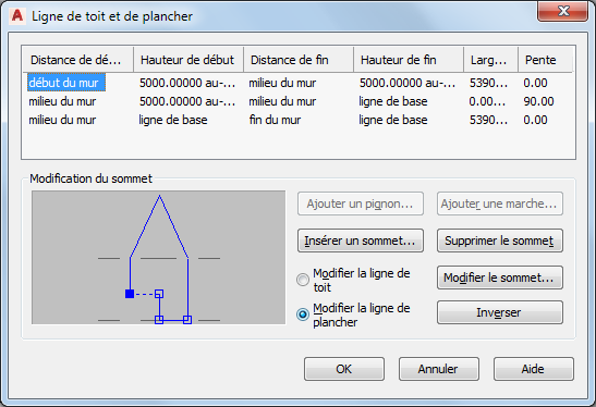 Pour définir les paramètres de marche d'une ligne de toit ou de plancher