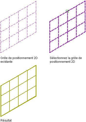 Les lignes horizontales et verticales de la grille de positionnement 2D définissent les divisions des grilles d'unités de murs-rideaux. Les cellules de la grille, le dormant et les meneaux sont affectés de définitions par défaut.