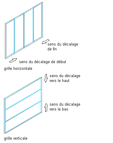 | le point de départ de la ligne de base du mur-rideau et le début de la première cellule d'une grille horizontale | entrez une valeur dans le champ Décalage début. |